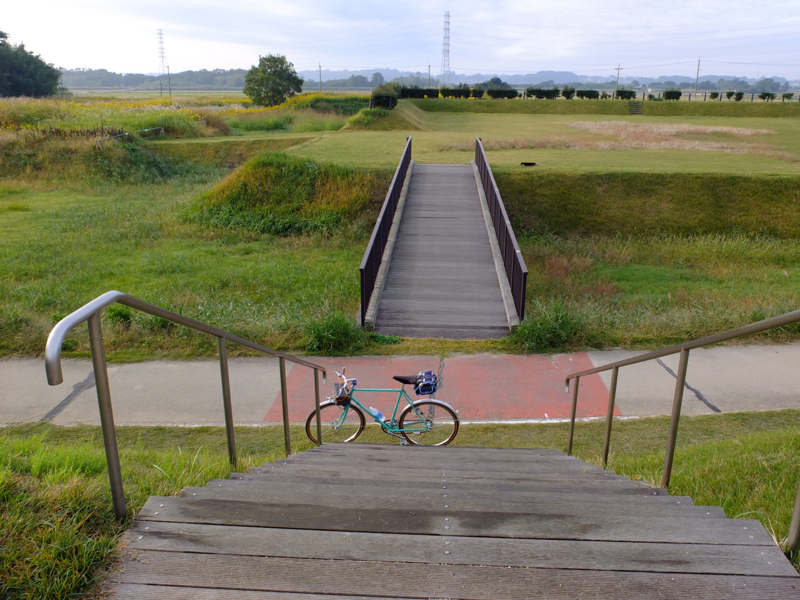 こちらは、りんりんロードの途中にある、小田城趾です。一段高いところに上ると全体が見渡せます。まあ、大体こんなもんねと理解した気分になって、先を急ぎましょう。なんたって俺は今日はノリノリで調子が良いからね!