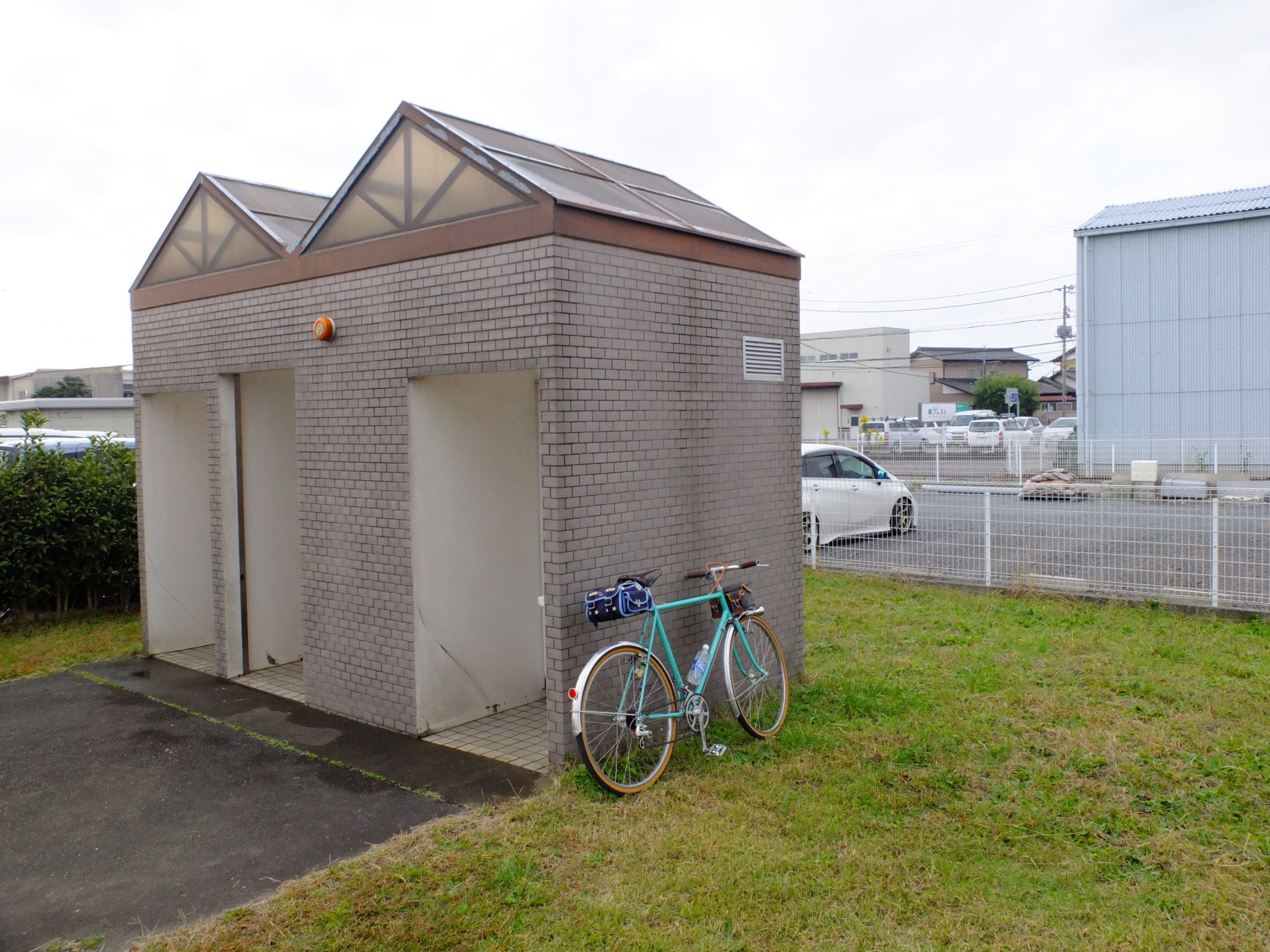 向かい風をモロに受けるので、シッコがしたくなるのは自然です。りんりんロードの途中にはこのような公共のトイレがあるので安心です。