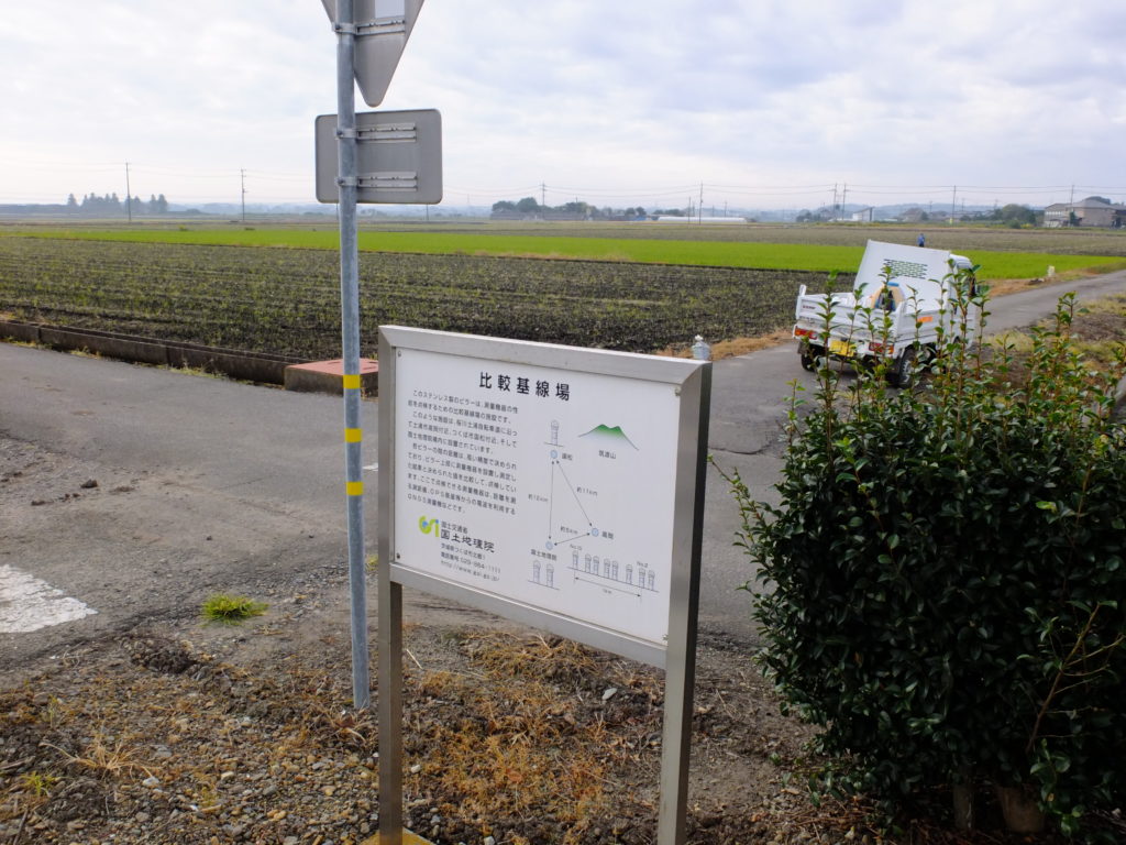 近くにあった看板によると、比較基線場とのことです。読んでも良くわかりませんが、距離とか測る機器の基準になるものなんでしょう。設置場所が地殻変動とかでズレちゃった場合どうすんのかとも思いますが、素人がそんなこと考えるよりさっさと集合場所に戻らねば。