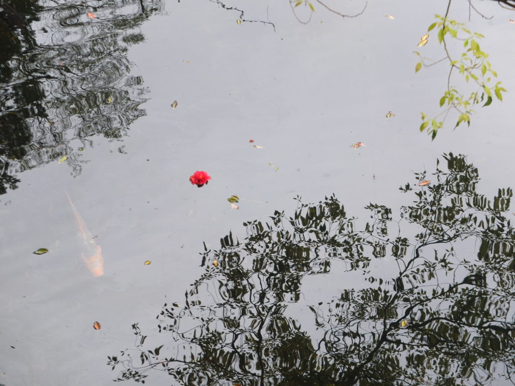 ・・・な〜んて考えているんじゃなくて、池の紅一点を眺めていたのかも(笑)