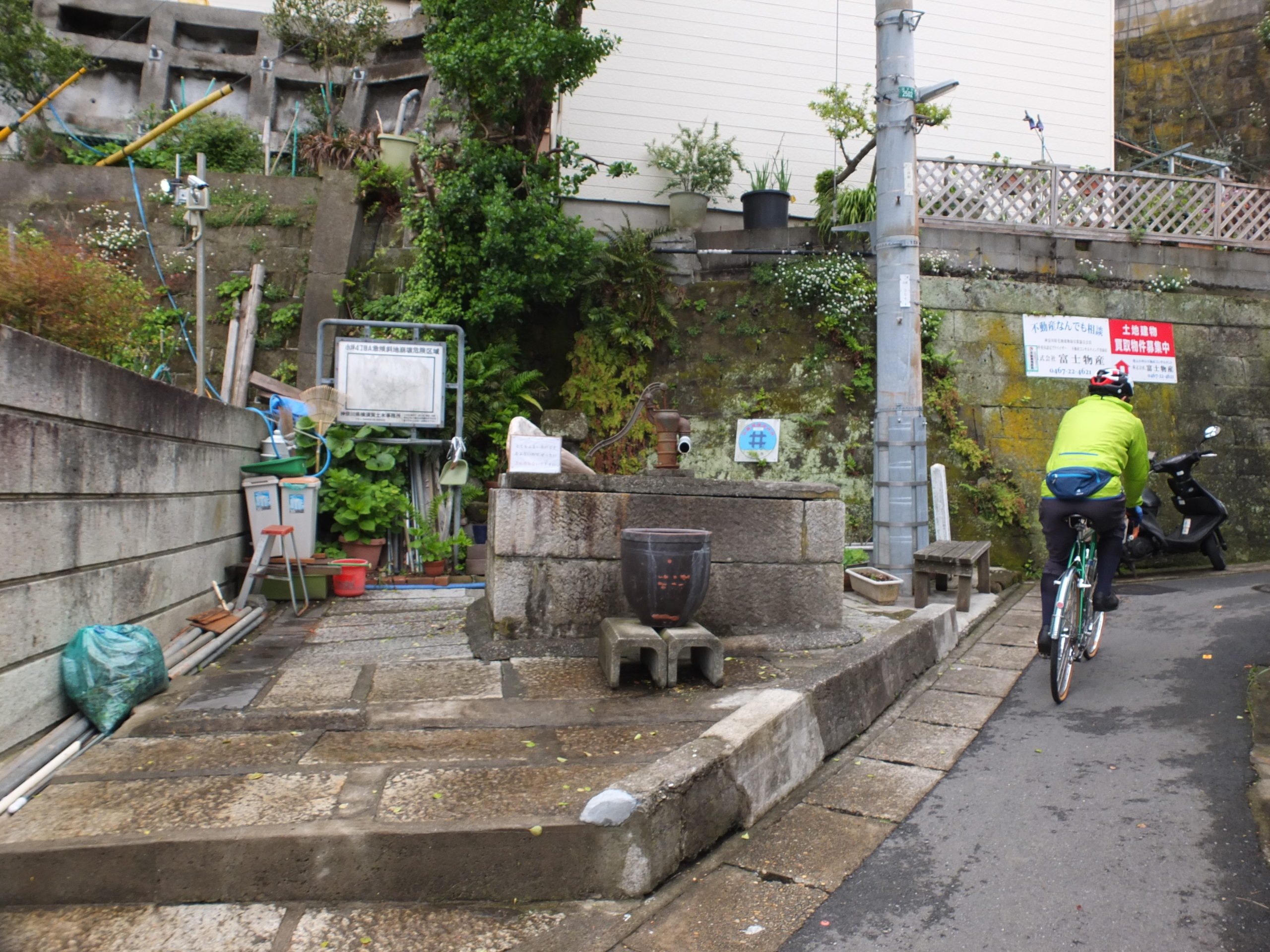 路面が濡れていて、二本の急坂下りは緊張しましたね。雨がなければ、鎌倉市街でもう少し裏道散策したかったのですが、それはまた次の機会にでも。