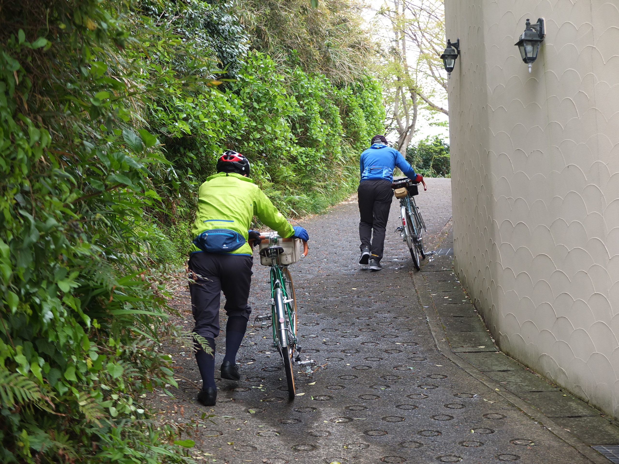 この様な環境では小口径車、折りたたみ自転車で小回りがきき、押して歩くのが似合う自転車が良いですね。