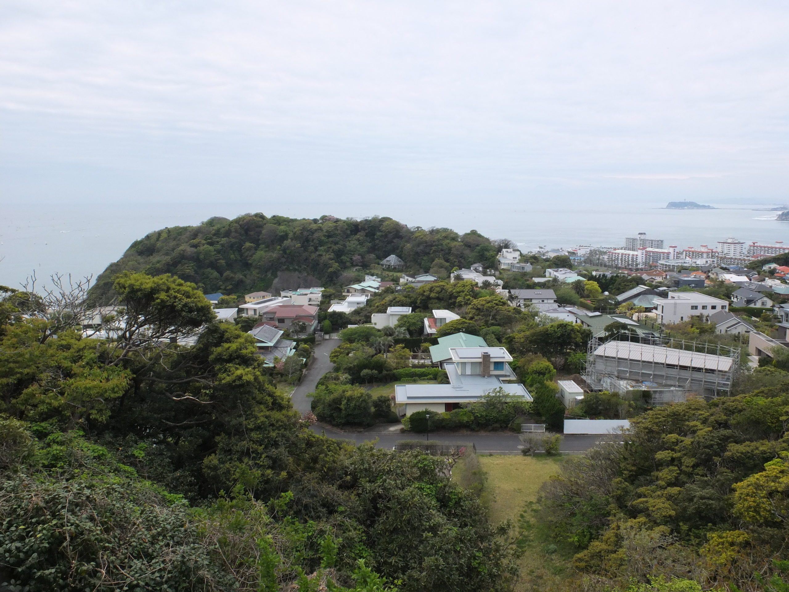 披露山公園の展望台からは、逗子マリーナ、小坪漁港、そして遠くに江ノ島、残念ながら富士山は見えなかったけど、うっすらと箱根だったり丹沢の山々が見えました。そして眼下には、広々とした邸宅が並んで見えます。それが先ほど通り抜けてきた披露山邸園住宅(ひろやまていえんじゅうたく)。都内だったりで高級とされる住宅地を見たことはあったけど、ここまでの景観と規模の宅地を見たのは初めてであります。人の生活感があまり感じられないのは人口密度が低いからでしょうか。場違いとも言えるエリアに入り込んでしまった自転車に乗った我々3人だけが動いているだけで、人とすれ違ったのもわずか1人でした。