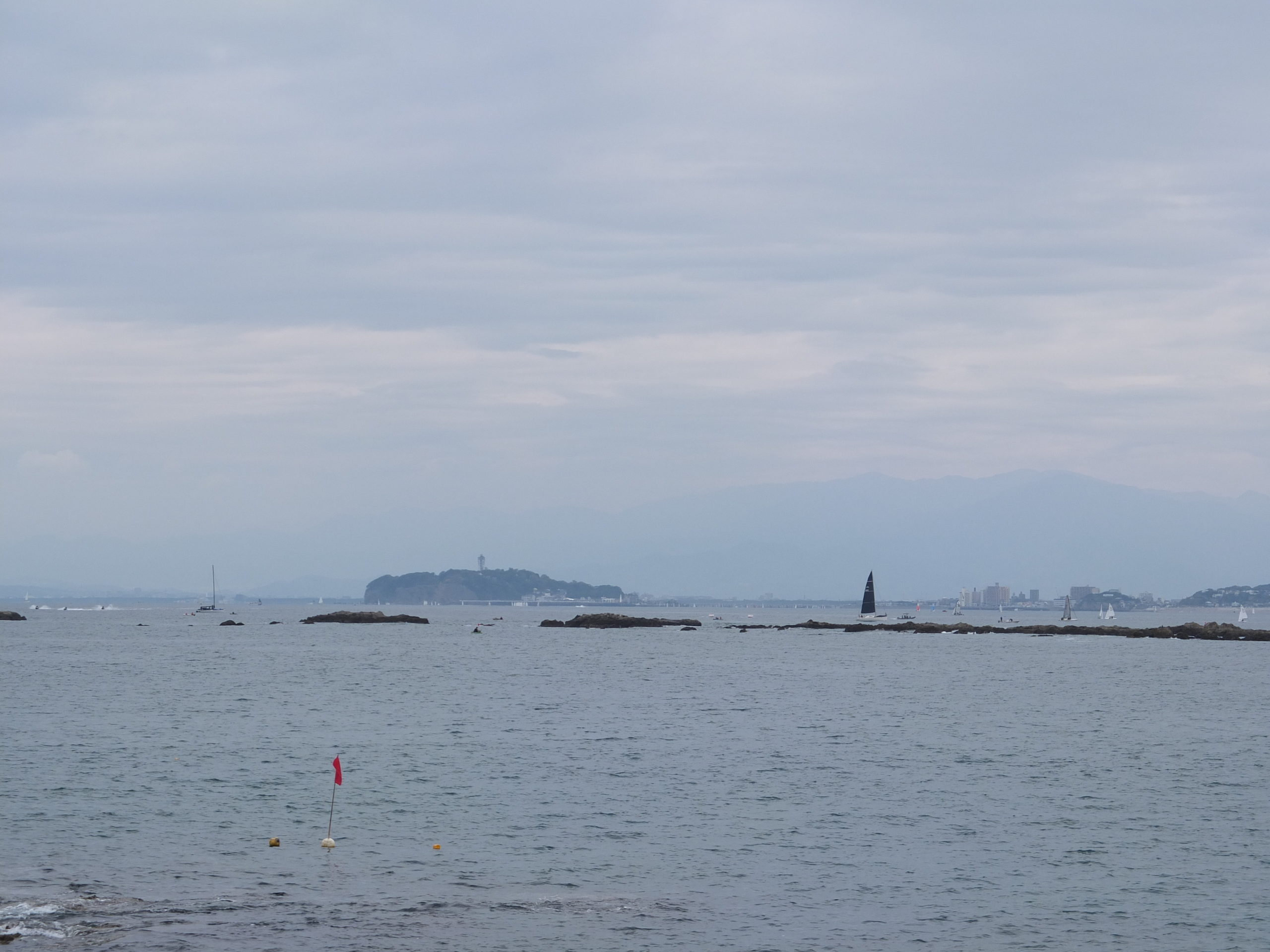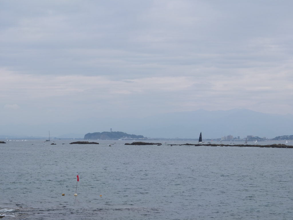 あそこからやって来たんだな。江ノ島も見えるね。