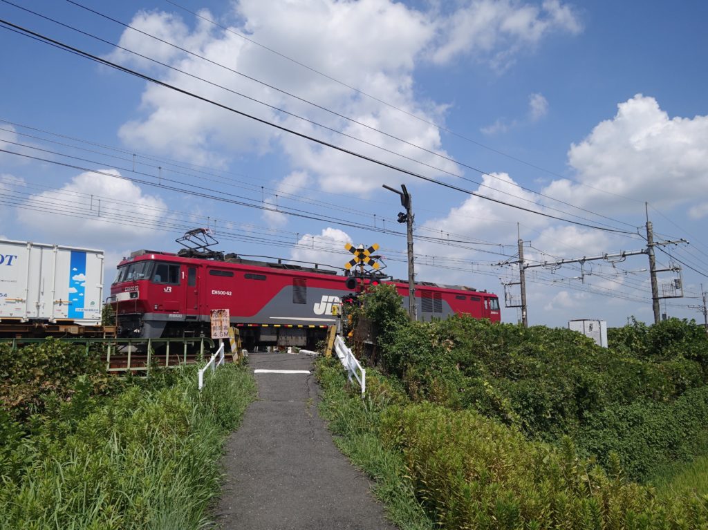 宇都宮線までやってきました。コンテナ引く機関車も暑いのにご苦労様ですな。