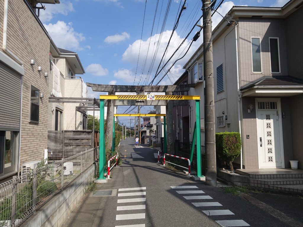 最後は、女体神社ですね。この住宅街にポツンとある鳥居の下をくぐって・・・