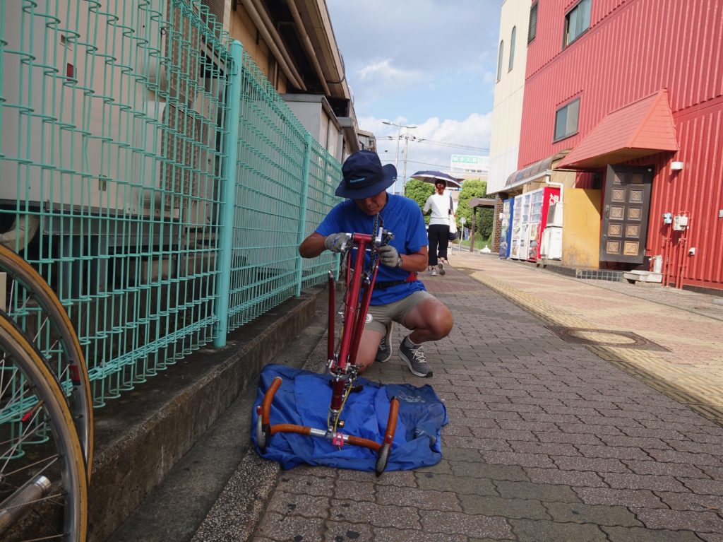 自転車バラすの面倒だから、この場合は、折りたたみで行きます。