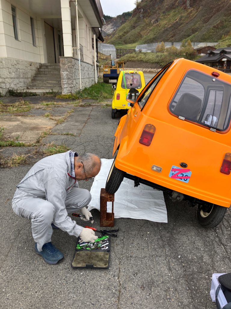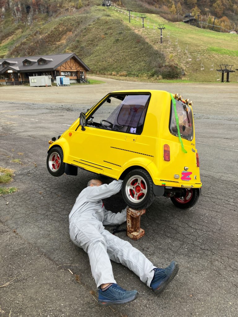 坂に対してエンジン回ってないなとのドクターの診断により、急遽スキー場脇の広場で、t.ABBEYのドライブ系の解体を始める事になりました。え”〜、マジか〜。