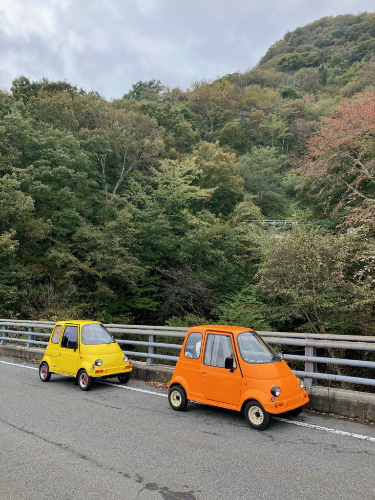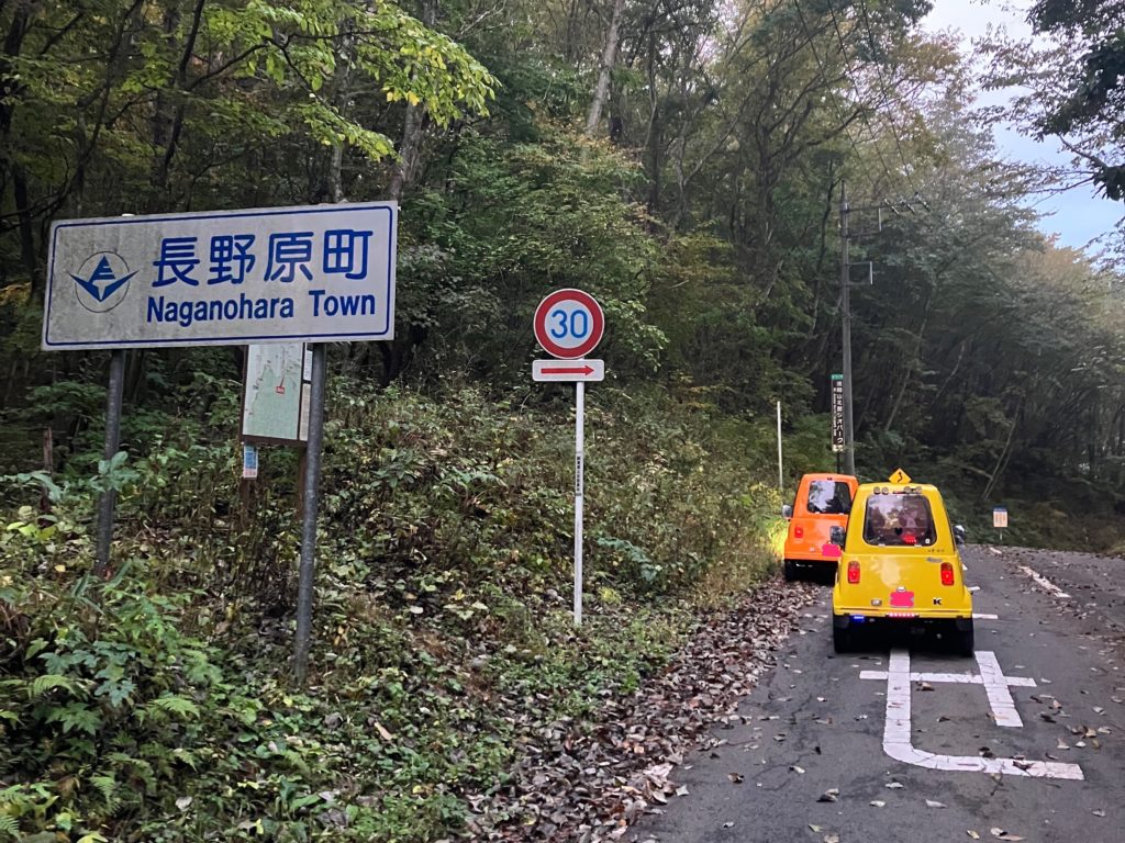 下りですが、タイヤが小さいので、アスファルトのうねりや、道路のつなぎ目にガーンと当たると、車線半分吹っ飛びます。リアルマリオカートです(笑)