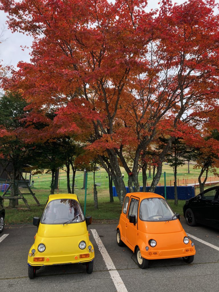 ゲレンデのレストハウスでお昼(?)を食べました。界隈は紅葉してました。