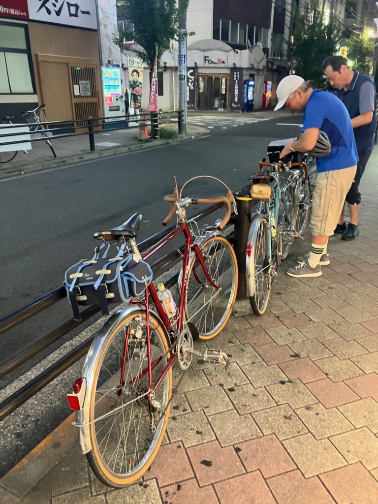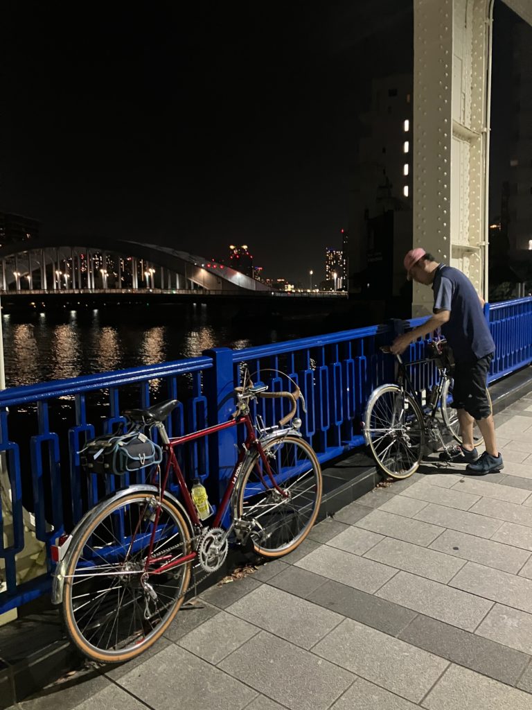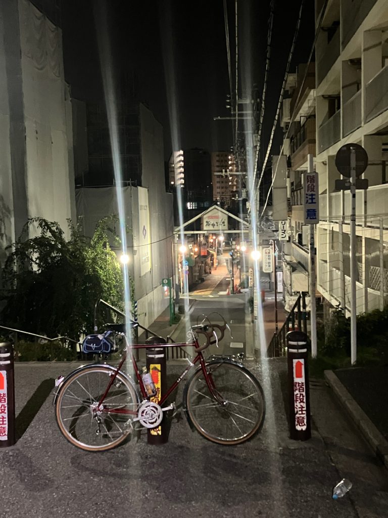 ところで・・・7月も終わりになって、「ホッピー飲んで暑気払いしよ〜」という催しを急に思い立って行いました。いきなりの呼びかけに応えてくれた参加者は、六浦っ子さんと高知のM氏であります。東京の端っこの清瀬までよくお出で下さいました。ホッピー呑んでい良い気になってだんだん声もデカくなってくる・・・。その時にふと最近走ってないな〜と思いついて、あまり暑くて昼間走れないから夜中にサイクリングやろうぜ、そういえば俺は山手線に沿って夜中に走った事があると話したところ、山手線一周はともかく夜中に巡ってみたいねと呼応してくれたので、昔やっていた夜の川巡りを思い出してやる事にしました。参加者は、2人に加えて2014年当初のオリジナルメンバーの4Catsさんであります。やっぱり何人かで走るのは楽しいね。途中のところどころで、いろんな事で話し込んだり、バカ話、笑ったりしながら道中楽しかったです。